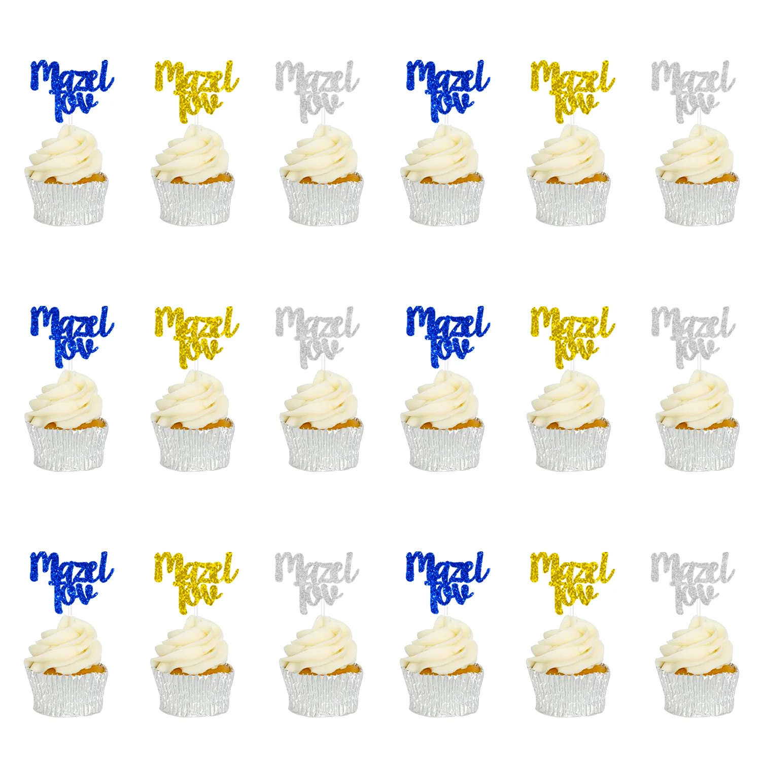 18PCS Glitter Mazel Tov cake topper(blue*6 gold*6 silver*6)