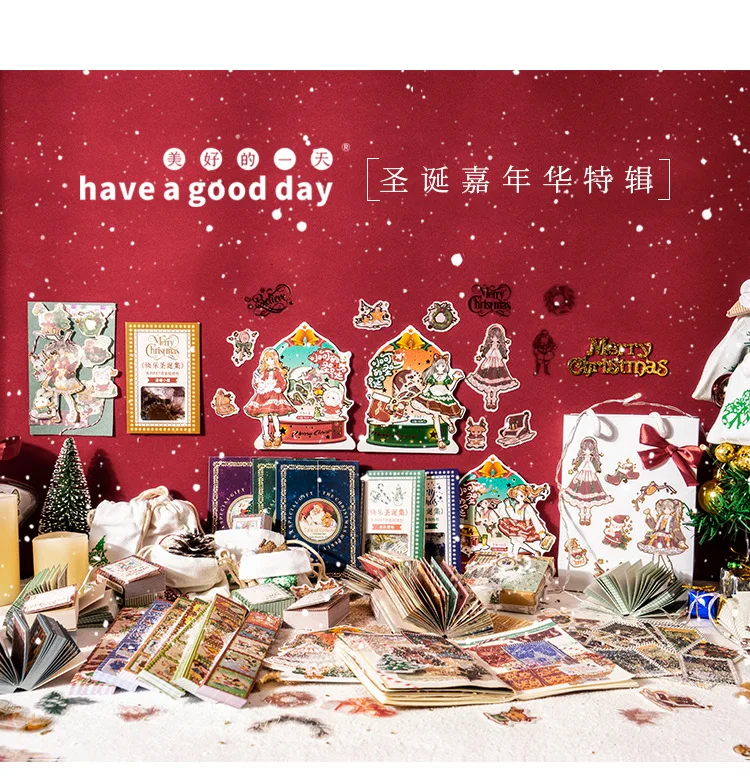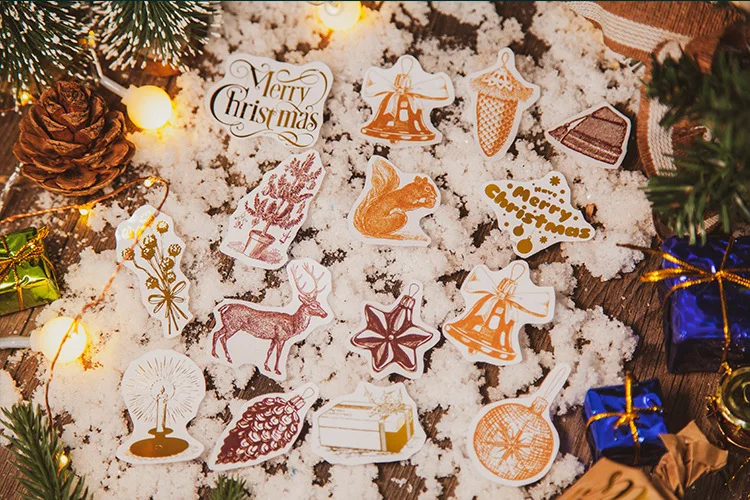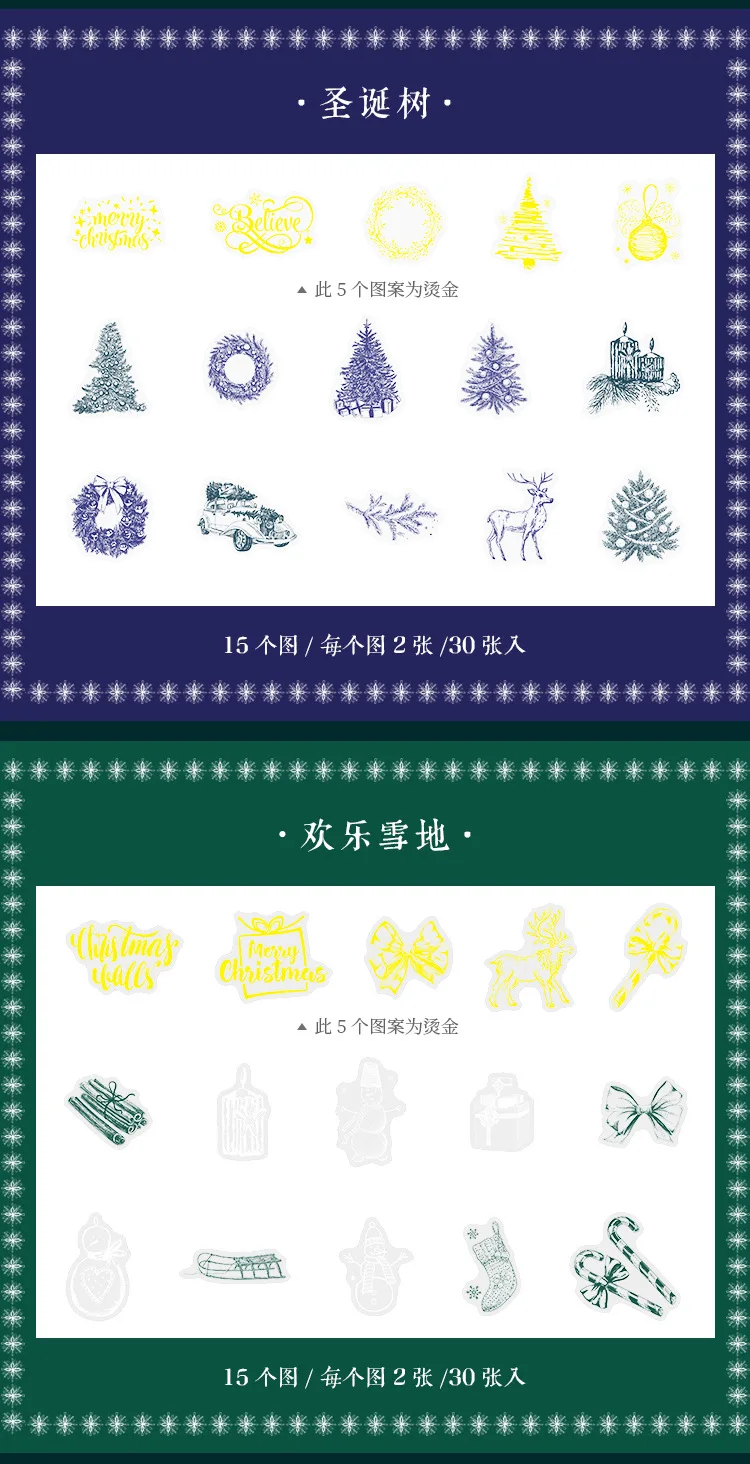 30 PCS PET Waterproof Merry Christmas Collection Tree Elk Decorative Stickers for Scrapbooking DIY Festival Gift