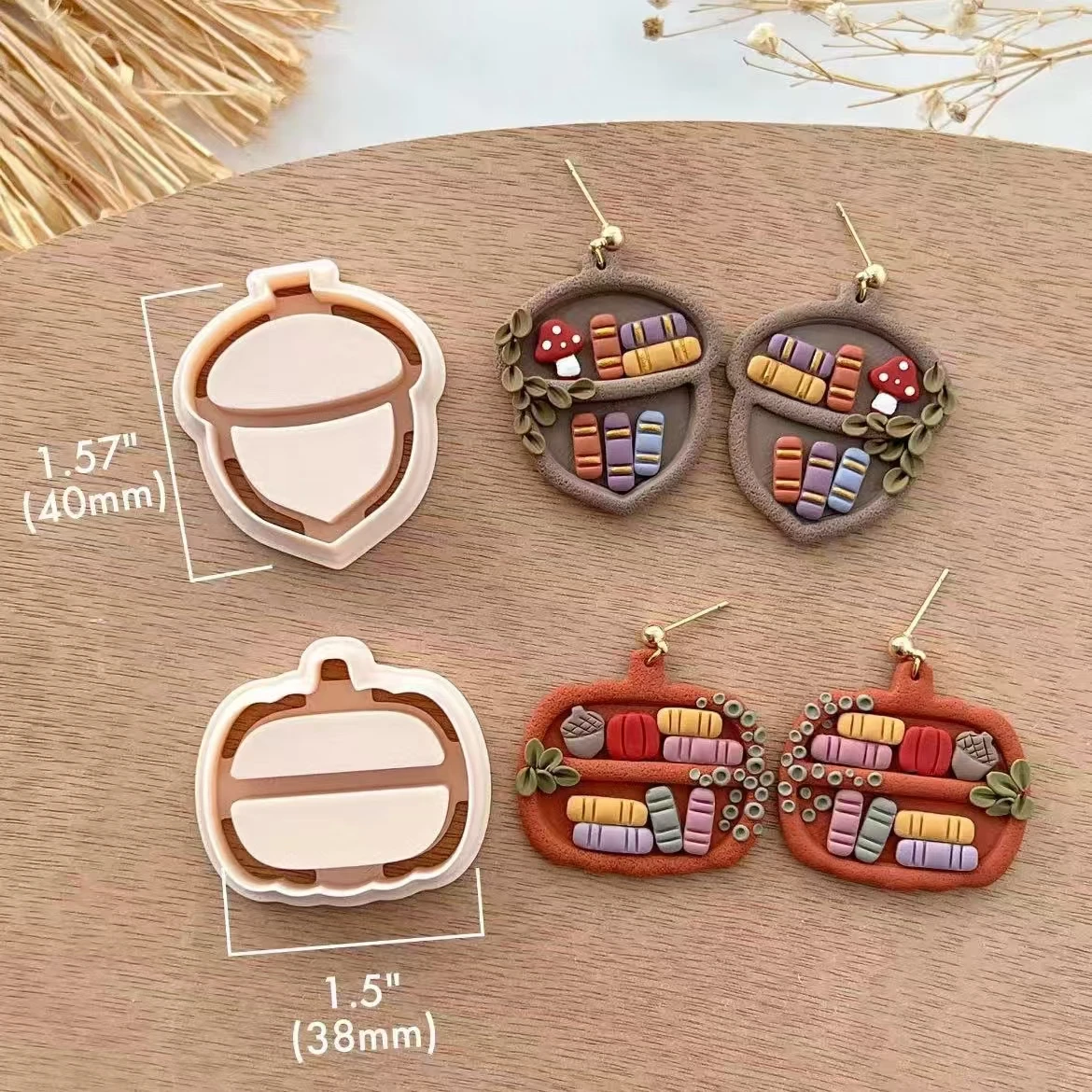 Acorn Pumpkin Bookshelf Polymer Clay Cutters | Halloween Clay Cutter | Clay Earring Cutters | Polymer Clay Cutter for Jewelry Ma