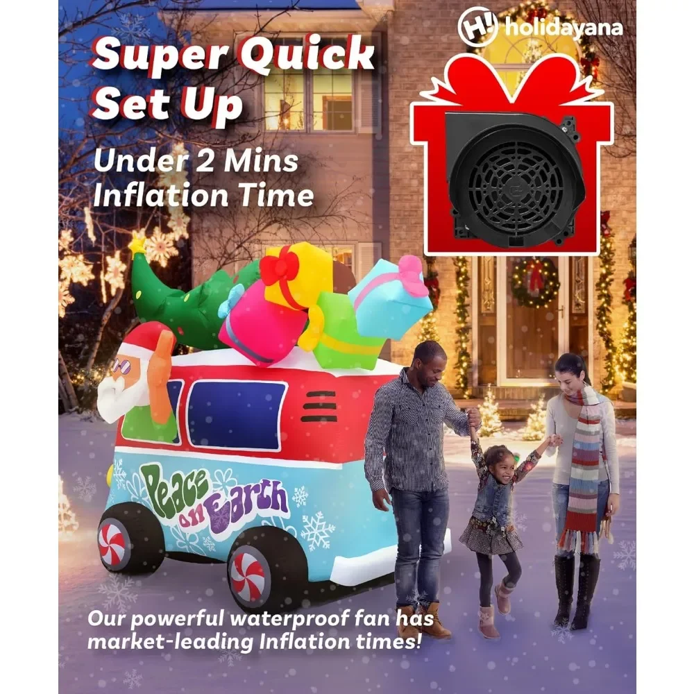 Christmas Inflatables Large 8ft Tall Santa Hippie Van - Inflatable Outdoor Christmas Decorations Blow Up X-mas Decora