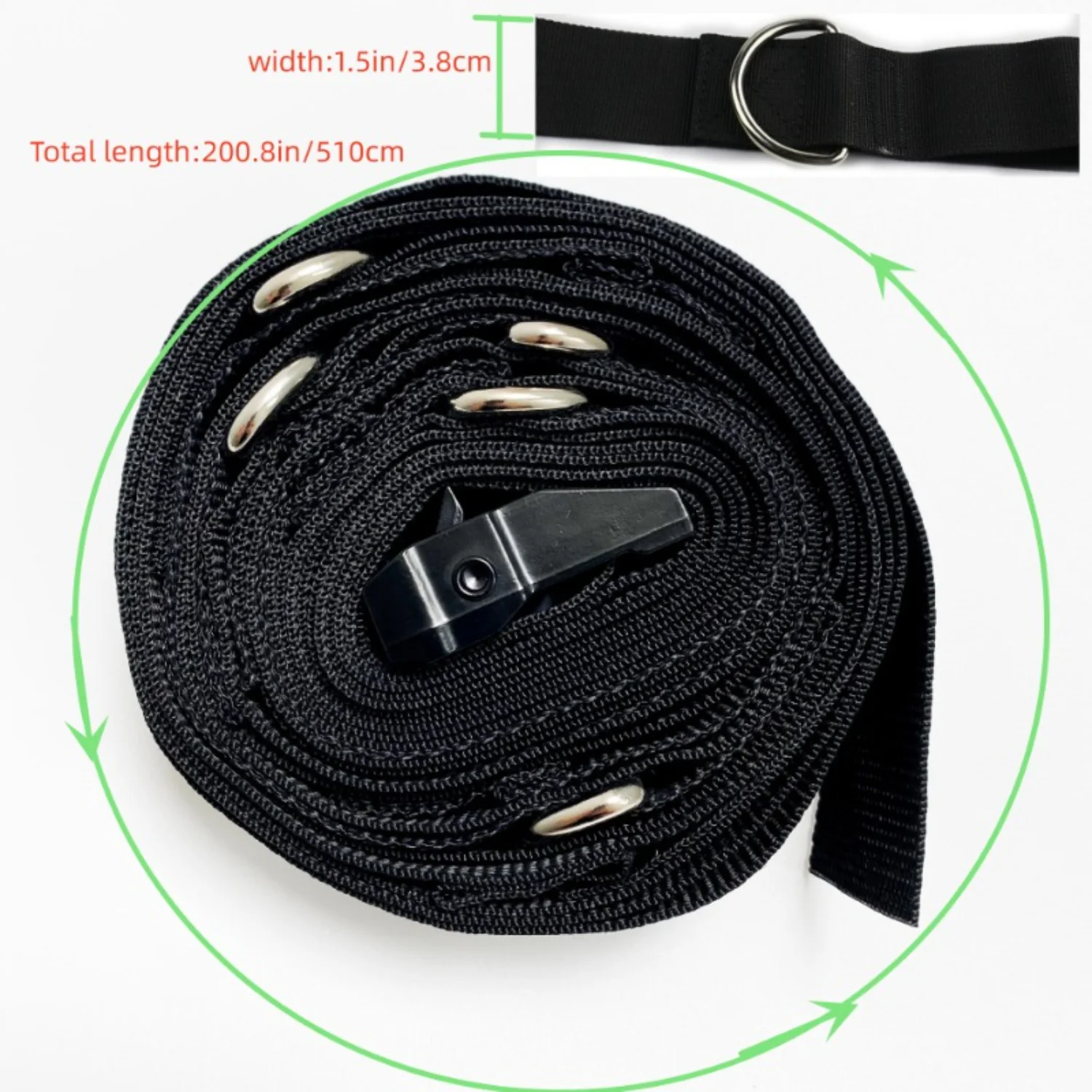 2. Elevate your workout with the 5 Loops Design Elastic Rope With Door Buckle. This door anchor resistance band is perfect for strength training, stretching, and toning exercises. The 200 inch/5.1m size offers plenty of room for dynamic movements, while the high resistance elastic band provides a challenging workout for all skill levels. Take your fitness routine to the next level with this versatile and portable fitness equipment.